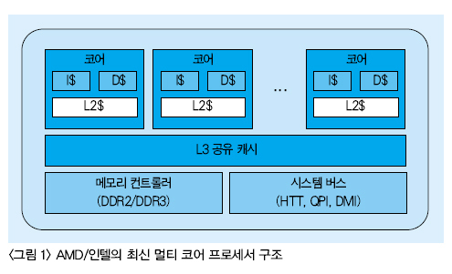 하지만 코어가 여러 개인 멀티 프로세서 환경이라면 성능에 역효과를 미칠 수 있습니다. 다음 그림을 살펴봅시다.