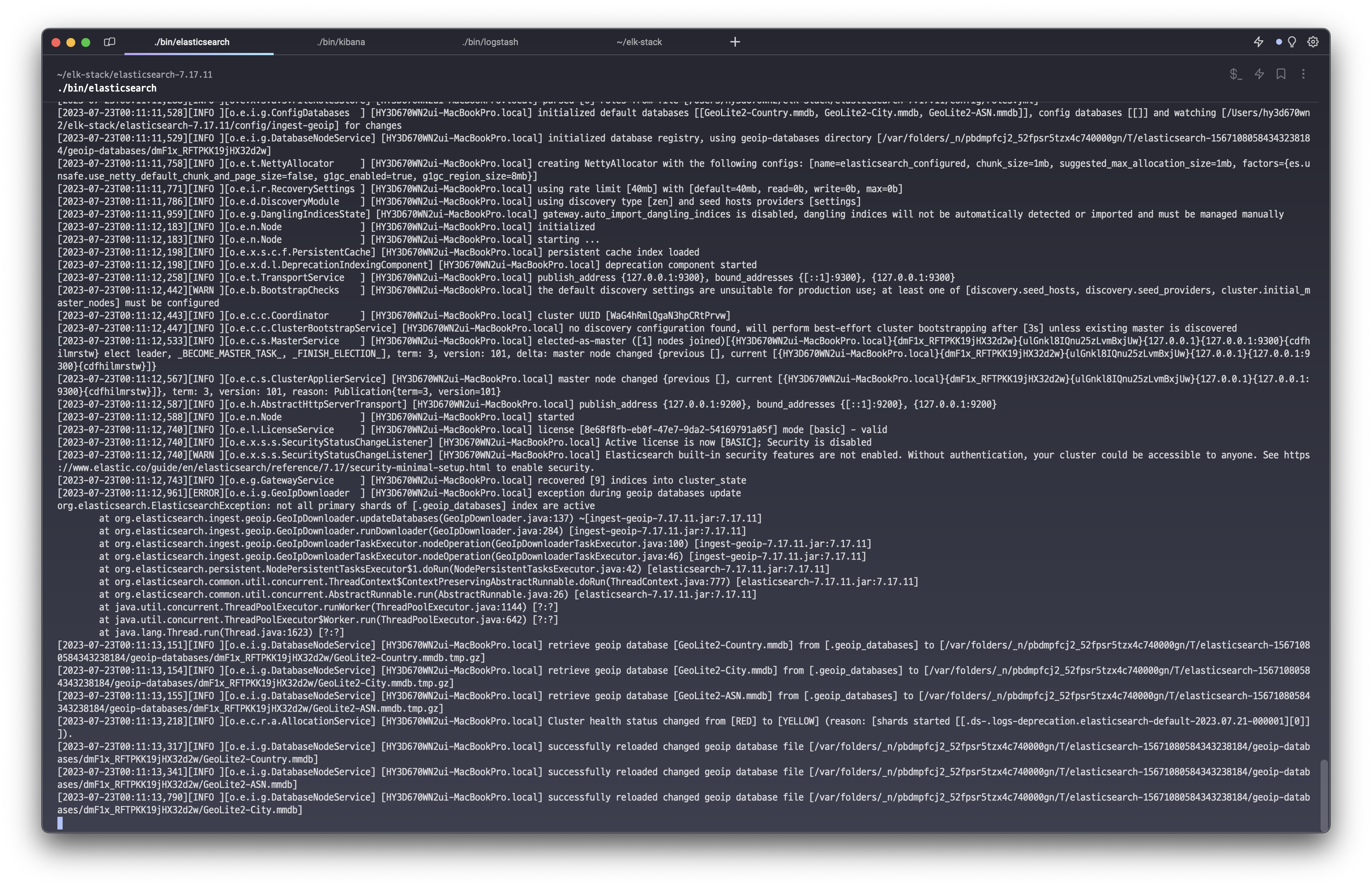 $ ./bin/elasticsearch