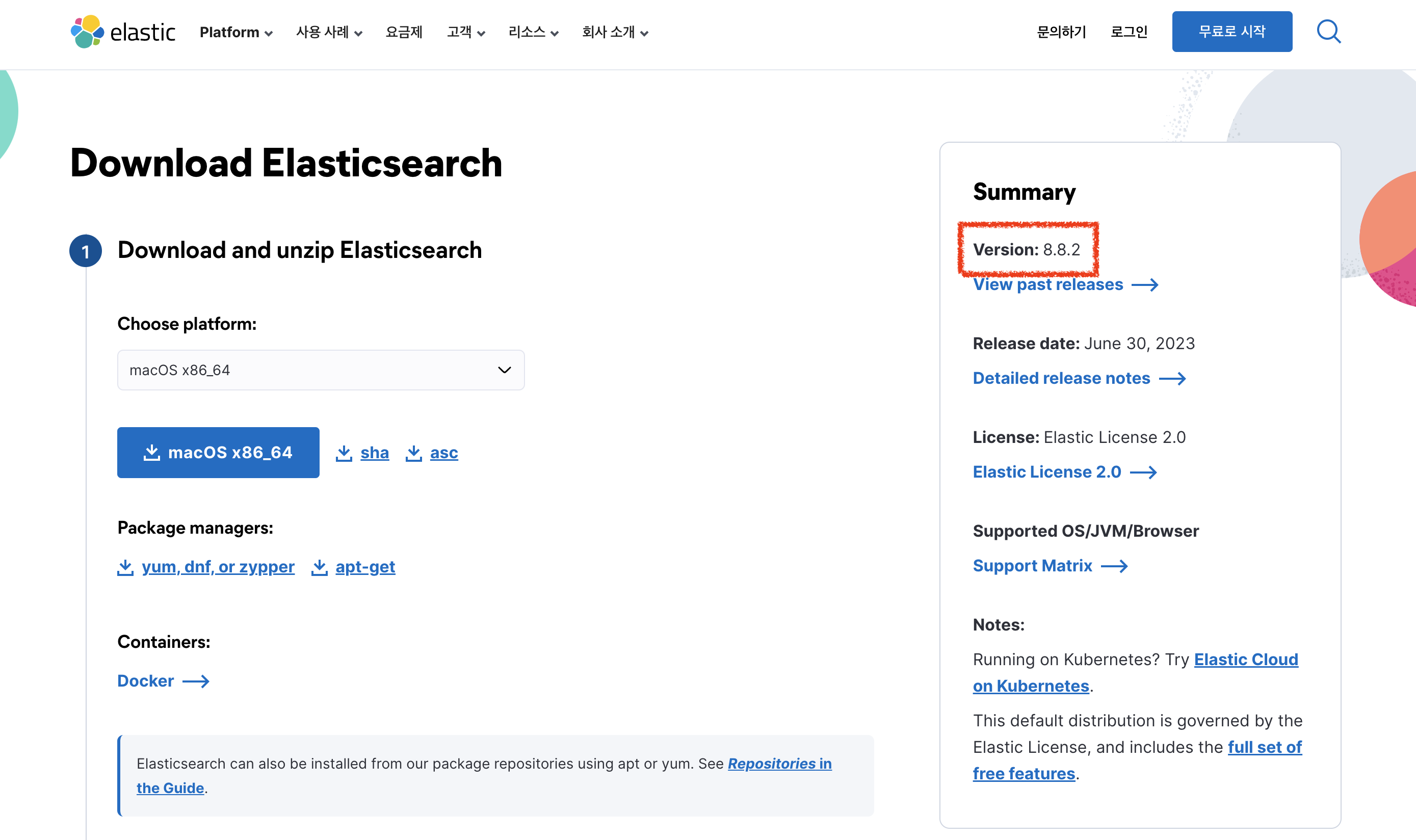 글을 작성하는 2023년 7월 23일 기준으로 8.8.2 버전이 최신 버전입니다. 마지막 릴리즈 날짜가 2023년 6월 30일이네요.