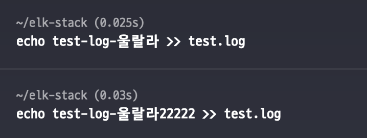 "message" : "test-log-울랄라22222",
