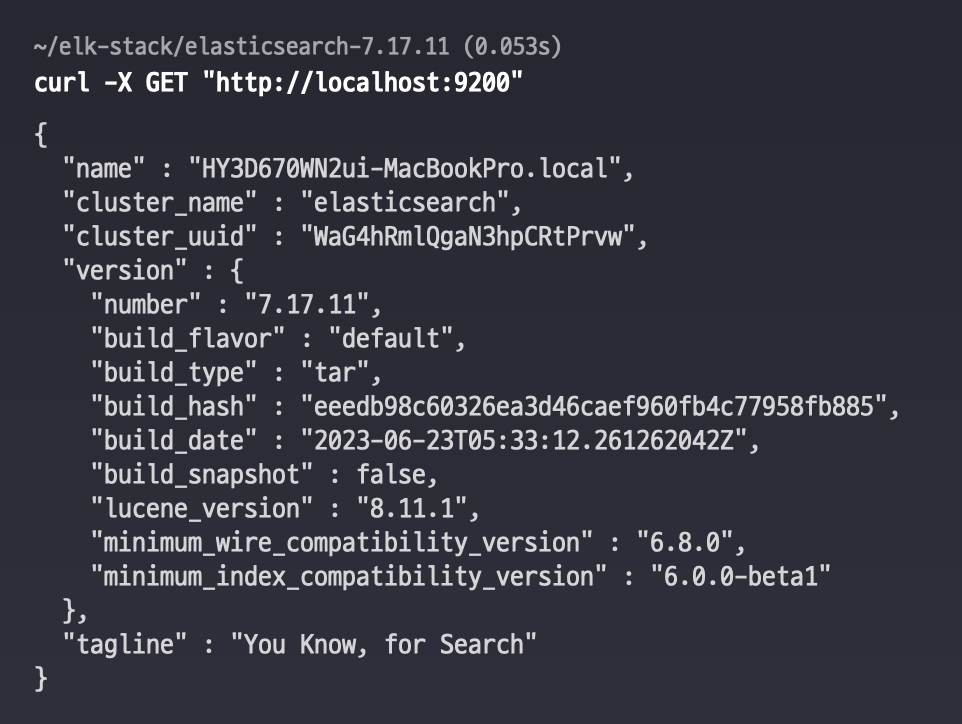 $ curl -X GET "http://localhost:9200"