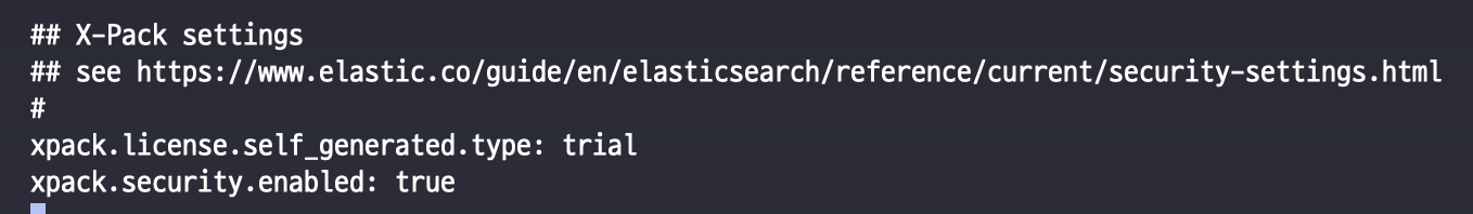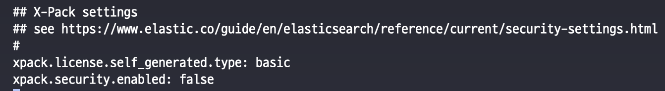 파일을 열어보니 위쪽에 X-Pack 관련 설정 정보가 보입니다.