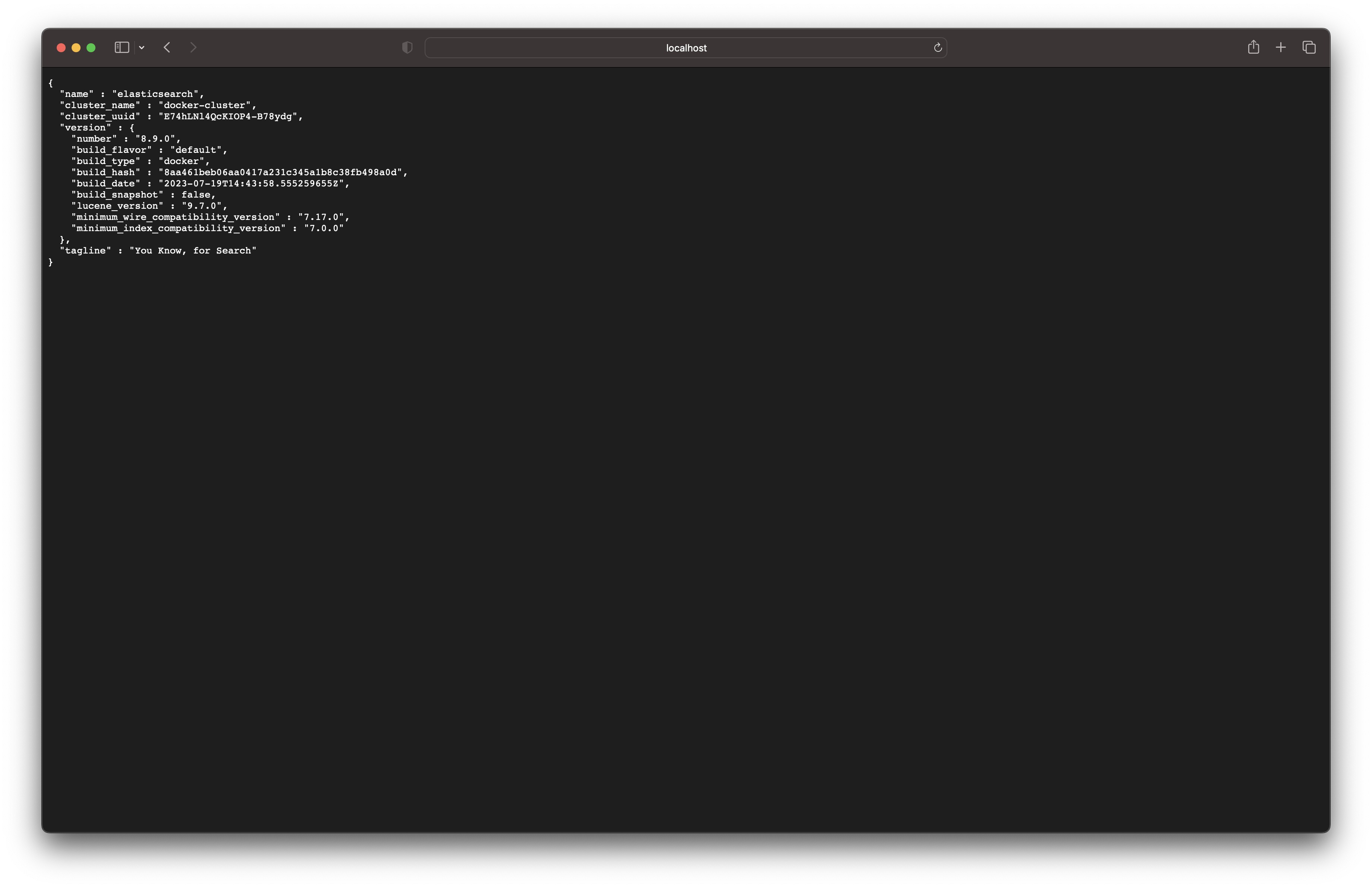 localhost:9200에 접속해서 Elasticsearch 클러스터가 잘 실행됐는지 확인해 봅시다.