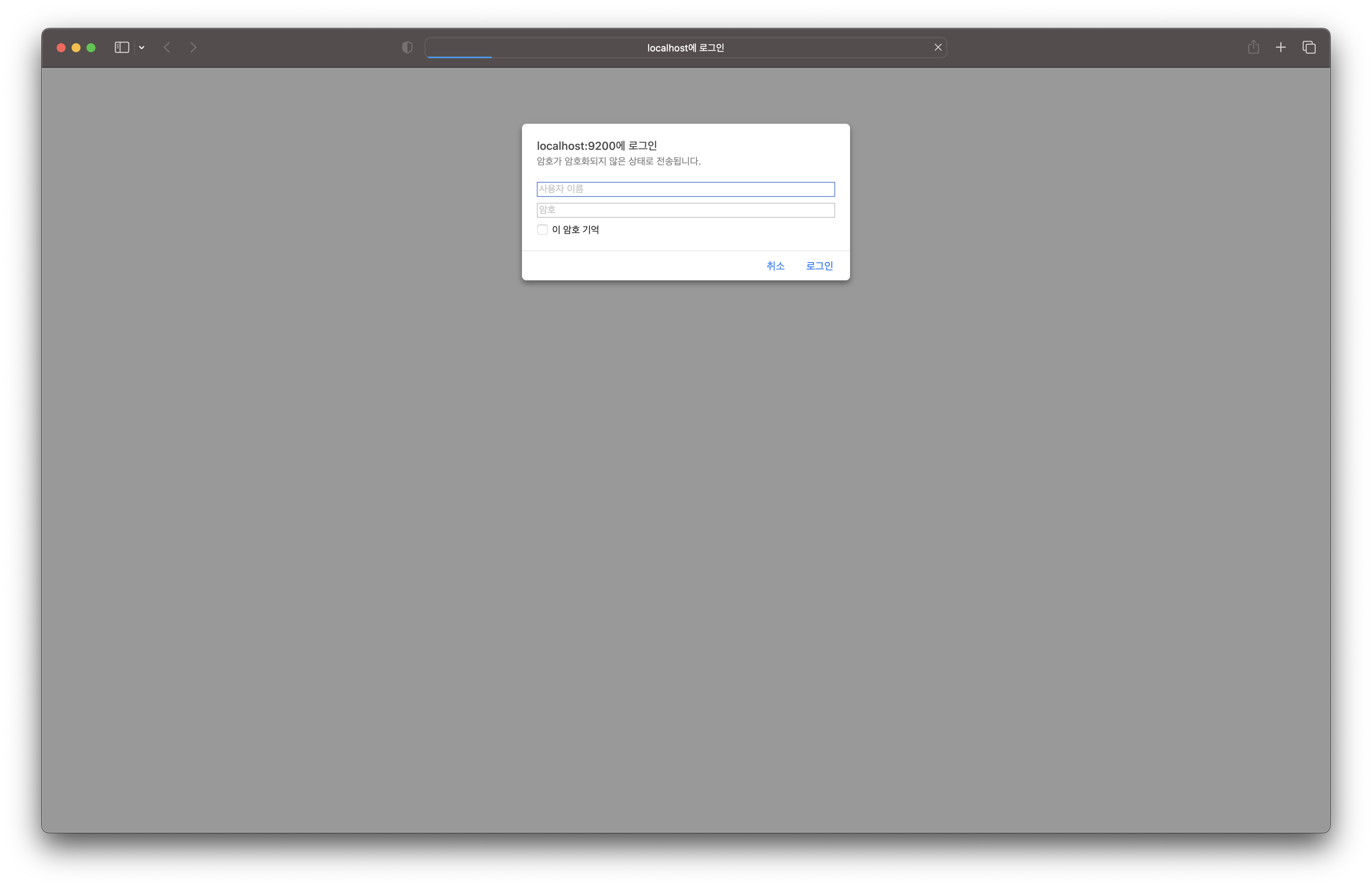 그랬더니 ID/PW를 입력하라고 나오네요. 프로젝트의 .env 파일에 보면 ID: elastic / PW: changeme 라고 나옵니다. 입력해 주면 클러스터 정보가 정상적으로 출력되는 것을 확인할 수 있습니다.