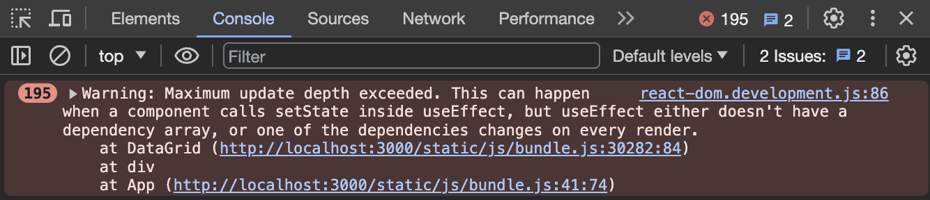 최대 업데이트 깊이를 초과했습니다. 컴포넌트가 useEffect 내부에서 setState를 호출하지만 사용 효과에 종속성 배열이 없거나 렌더링 할 때마다 종속성 중 하나가 변경되는 경우 이 문제가 발생할 수 있습니다.