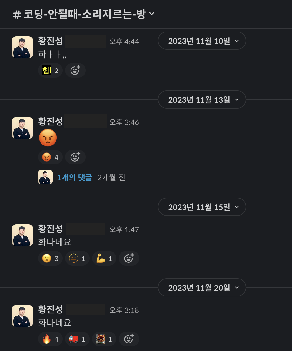 11월쯤 회사에서 React로 JSON 에디터를 만든 적이 있습니다. 공식 문서에서도 자세한 정보가 없고, ChatGPT에게 물어봐도 도움 되는 답변을 얻지 못해 너무 힘들고 답답했습니다. 회사 슬랙에 "코딩 안될 때 소리 지르는 방"이라는 공개 채널이 있는데, 저는 매일같이 찾아가 소리를 지르곤 했습니다.